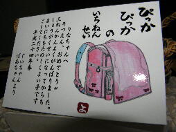 昨日(4/6日)、里菜ちゃんは入学式を終わりいよいよピカピカの一年生です。 おめでとう! 元気で登校して沢山のお友達を仲間に遊んだり勉強もしたり楽しい事が一杯有るよ。 遼君潤君はピカピカの二年生です、益々元気が取りえですよ三人集まれば学校は違っても小学校の先輩だね。 今年も仲良く大きく成長してください。3/25日は遼君潤君の7才誕生日祝いでばあちゃんは二人に手作りのケ-キをプレゼント、二人も手伝ってくれて見事に完成し美味しく食べたね、じいちゃんもおすそ分けもらい甘くてうまかった! 二人が出来上がりのケ-キを絵に描いてくれたので写真を撮り保存したよ。 孫達の成長はその変化が見て取れます、じじばばも気持ちだけでも遅れずに健康一番で愛犬マル君と朝夕の散歩を欠かさず実行、ばあはプ-ルで体調を整えているようです。 私も家中のゴミにならない様にそして女房の言う事を聞くようにと桜の花を見ながら一考!。