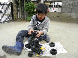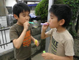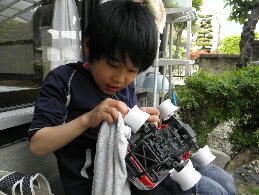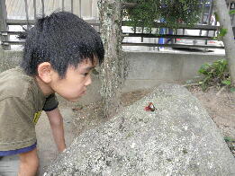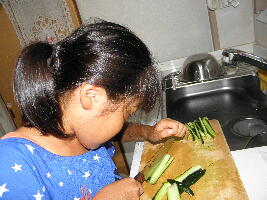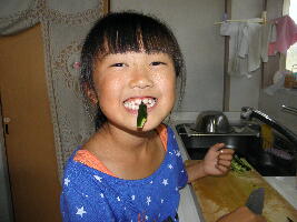元気なのは孫とラン君です、里菜ちゃんはキッチンで冷やし中華の準備を手伝ってくれましたがご覧の通り刻んだキュウリをくわえてハイ!ポ-ズでした。遼君潤君は楽しそうにシャボン玉遊びをしたりラジコンカ-を動かしたり解体して清掃したり暇が有りません・昆虫に甘い物を与えて食する様子を観察したりと大忙しです。暇なのはじいと愛犬ラン君でした。